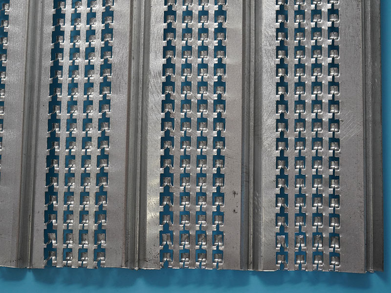 建筑收口網又名免拆模板網是作為消耗性模板來固定的。當混凝土在模板后面澆注時,網眼上的余角片就嵌在混凝土里,形成一個與鄰近澆注塊相連的機械式楔。接縫的質量受到嚴格控制。其粘接及剪切方面的強度可與經過良好處理的粗琢縫合相媲美。二次澆注時可免去打孔、拉毛等工序可縮短施工周期,同時增加了澆注體的強度。